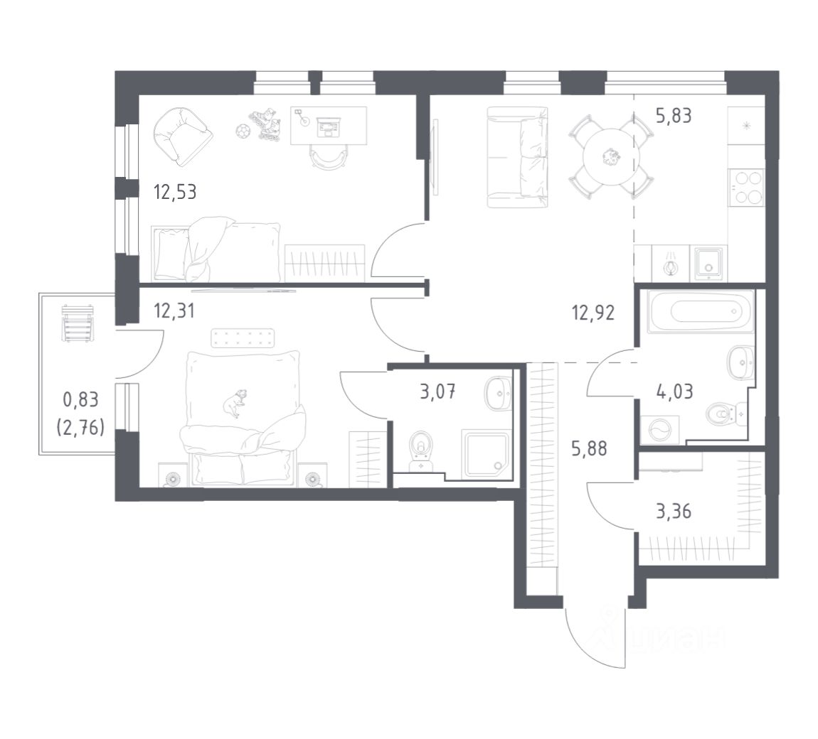 Строим кварталы для жизни с заботой о будущем. Предлагается 2-комнатная квартира комфорт-класса площадью 60.76 кв.м в корпусе 1КВ на 3-м этаже, в жилом комплексе "Сабанеева 125".
