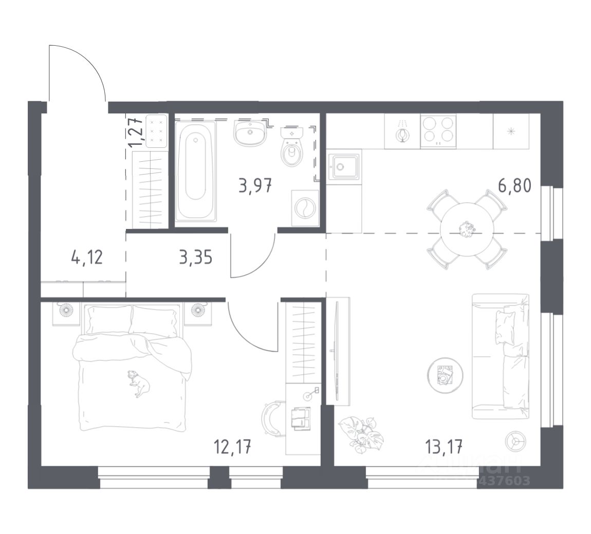 Строим кварталы для жизни с заботой о будущем. Предлагается 1-комнатная квартира комфорт-класса площадью 44.85 кв.м в корпусе 1КВ на 4-м этаже, в жилом комплексе "Сабанеева 125".