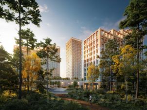 Подъезды расположены на уровне земли — удобно для колясок, велосипедов и самокатов. Лобби в светлой палитре с зелёными и оранжевыми акцентами дополняет рабочая зона для встреч и онлайн-конференций. В домах предусмотрены современные бесшумные лифты.