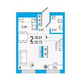 Продается 2-комн. квартира, 55,72 м²