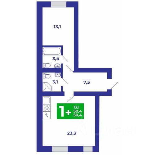 Продаётся 1-комнатная квартира в строящемся доме (Дом 1), срок сдачи: IV-кв. 2027, общей площадью 50.4 кв.м., на 1 этаже. Новый жилой комплекс "Клубный дом Санрайз" от застройщика "ИнвестРайСтройЗаказчик" расположен по адресу Россия, Республика Башкортостан, Стерлитамакский район, Отрадовский сельсовет.