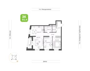 • Трехкомнатная квартира для семьи или молодых людей с уникальной геометрией 80,4 м