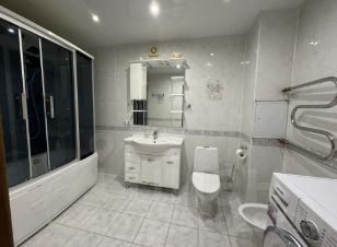 В квартире выполнен дорогой качественный ремонт: стены выровнены под покраску, на полу натуральный паркет, шпонированные двери. Установлена премиальная техника Bosch, Neff, Siemens, вся мебель — под заказ.