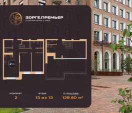 Продается 2-к-комнатная квартира в ЖК Зорге. Премьер от ГК "Жилстройинвест". 13-й этаж 14-этажного жилого дома, общая площадь 129.8 кв.м., жилая площадь 28.5 кв.м.