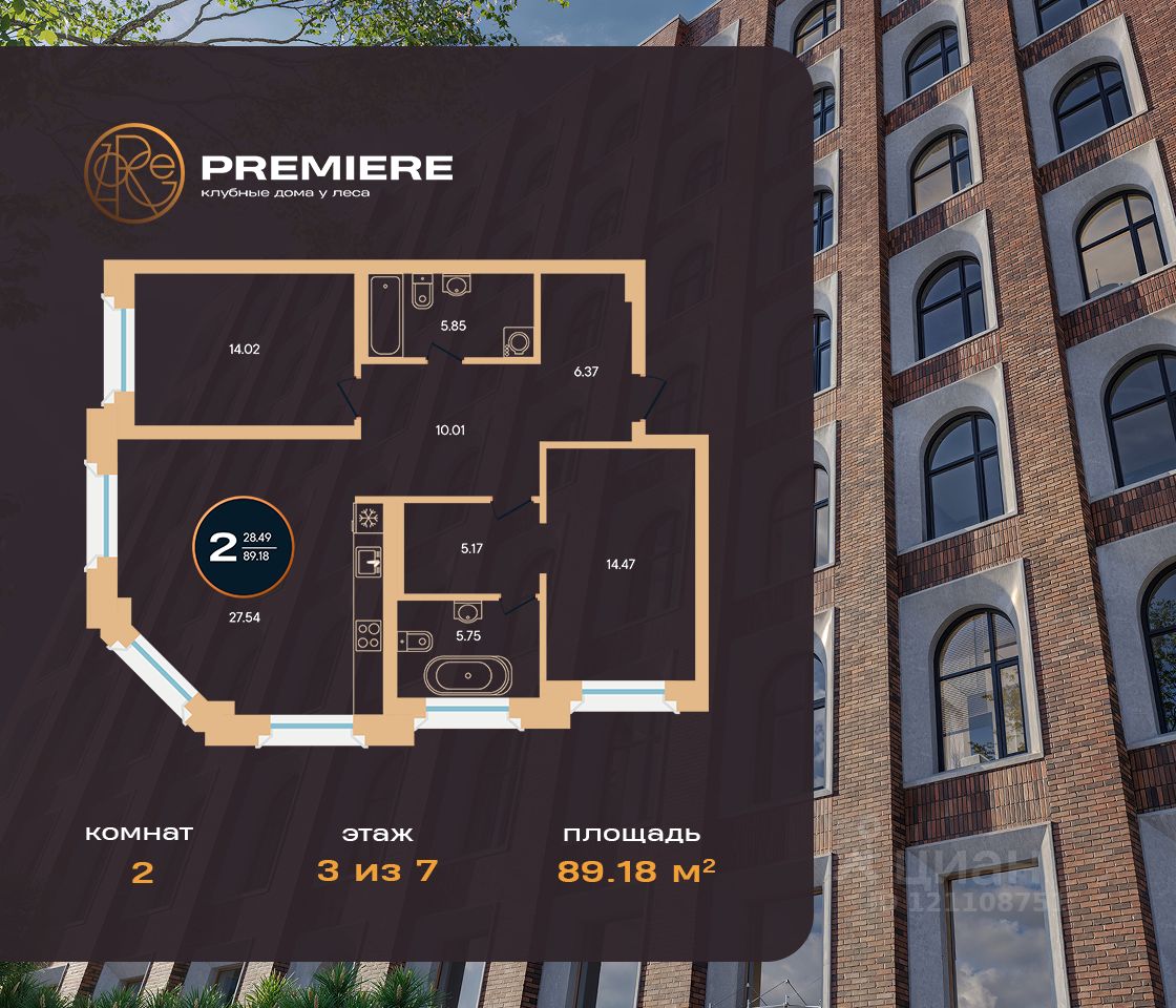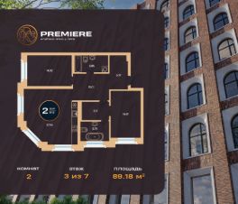 Продается 2-к-комнатная квартира в ЖК Зорге. Премьер от ГК "Жилстройинвест". 3-й этаж 8-этажного жилого дома, общая площадь 89.18 кв.м., жилая площадь 28.49 кв.м.
