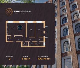 Продается 3-к-комнатная квартира в ЖК Зорге. Премьер от ГК "Жилстройинвест". 5-й этаж 8-этажного жилого дома, общая площадь 103.1 кв.м., жилая площадь 32.21 кв.м.