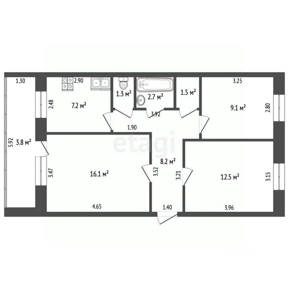 Планировка: Просторная и функциональная, с раздельной ванной комнатой, отделанной качественной плиткой.