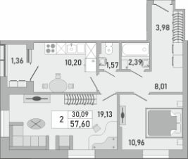 57,6 м²