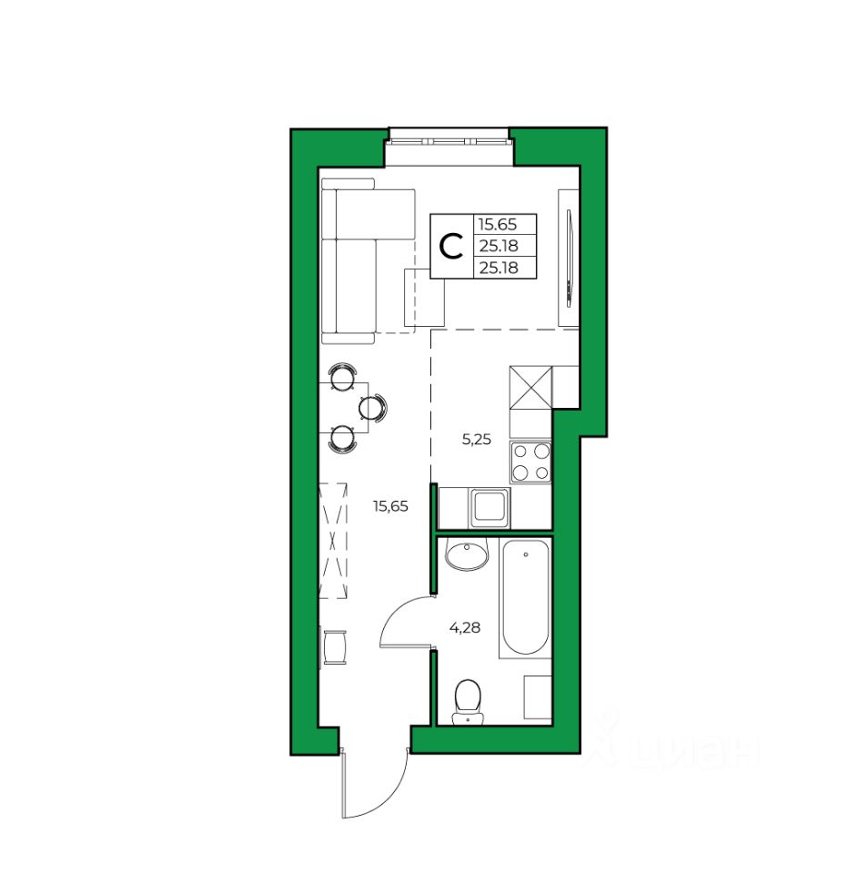 Продается 1-к квартира 25.18 кв. м.: