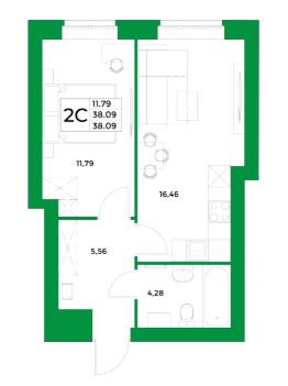 - жилая площадь 11.79 кв. м., кухня 16.46 кв. м..