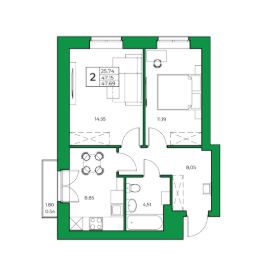 - жилая площадь 25.74 кв. м., кухня 8.85 кв. м..