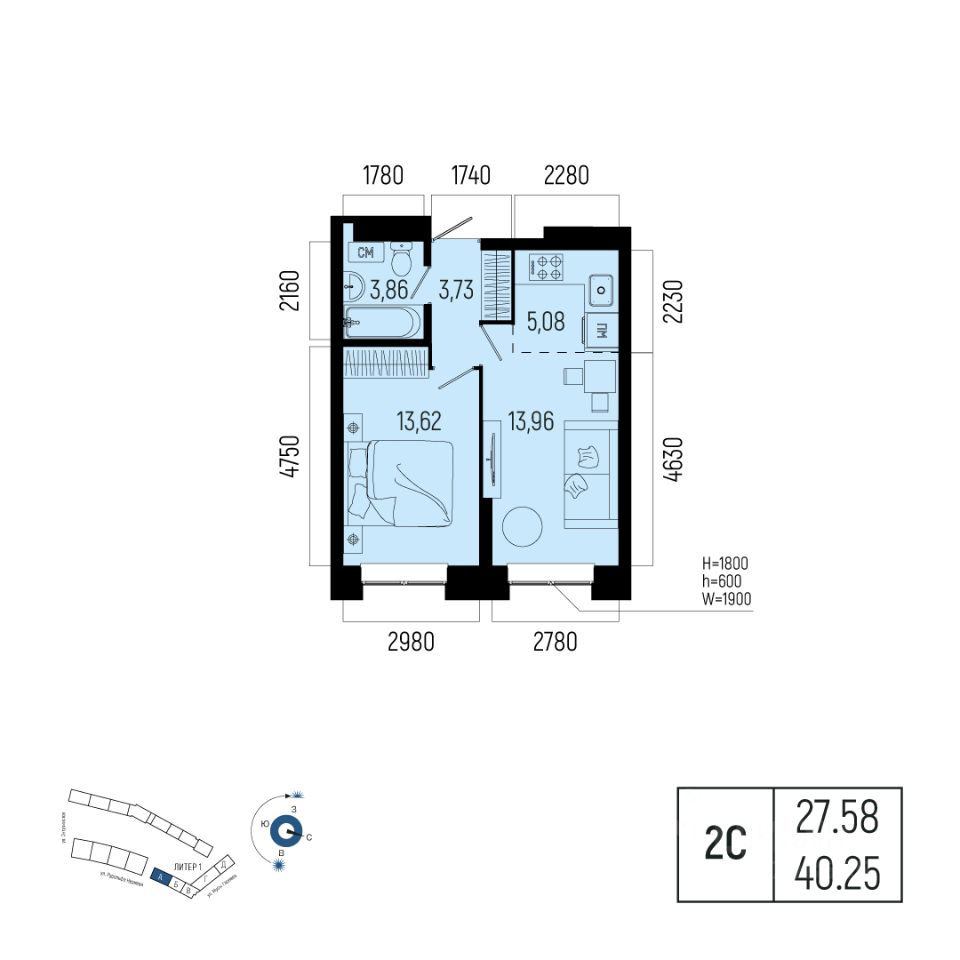 Жилая площадь 27.58 кв. м. от ГК "Первый Трест".