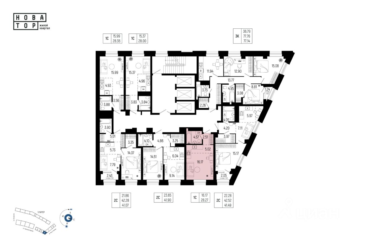 Жилая площадь 16.17 кв. м. от ГК "Первый Трест".