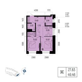 Общая площадь 49.46кв.м.;