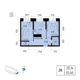 Общая площадь 55.46кв.м.;