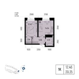 Общая площадь 39.35кв.м.;