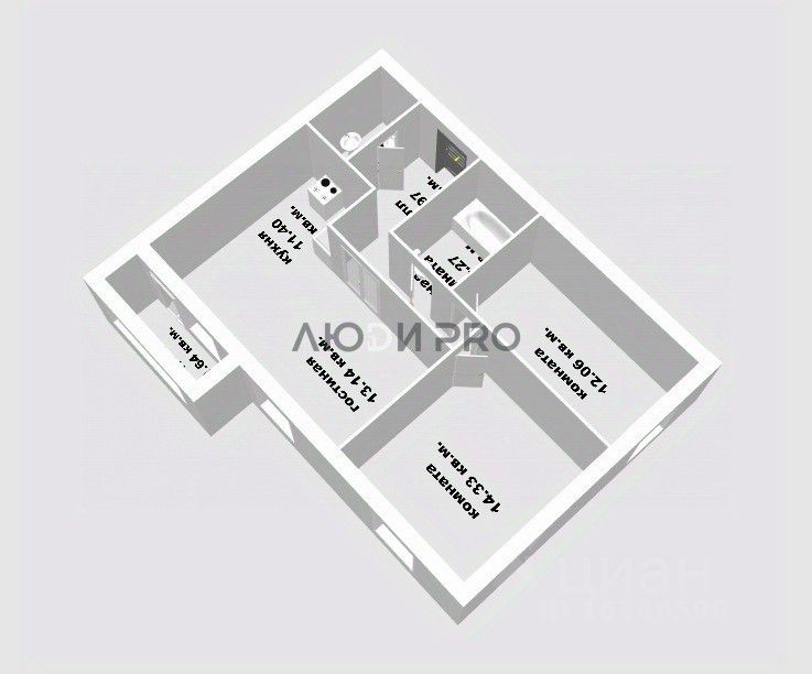 Две изолированные спальни + кухня-гостиная — каждому члену семьи своё пространство.