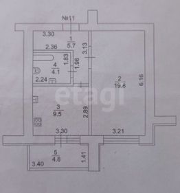 Общая площадь: 39,1 кв.м.