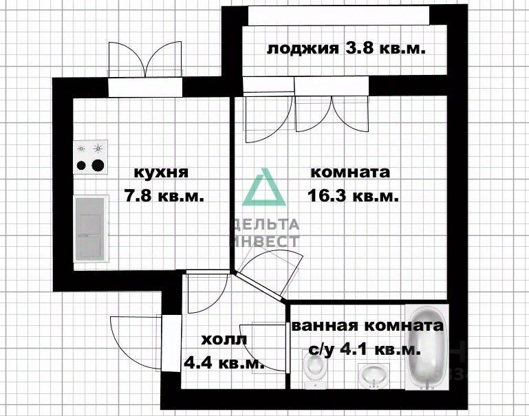 Арт. 128951645 Продаётся отличная однокомнатная квартира на 2 этаже 12-этажного дома. Площадь квартиры составляет 31,4 м², из которых на кухню приходится 7,8 м², гостиную 16,3 м² без учета лоджии.