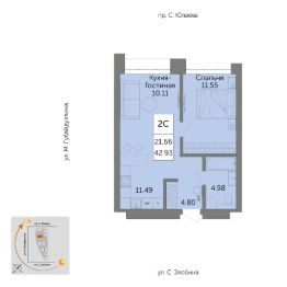 Общая площадь 42.93кв.м.;
