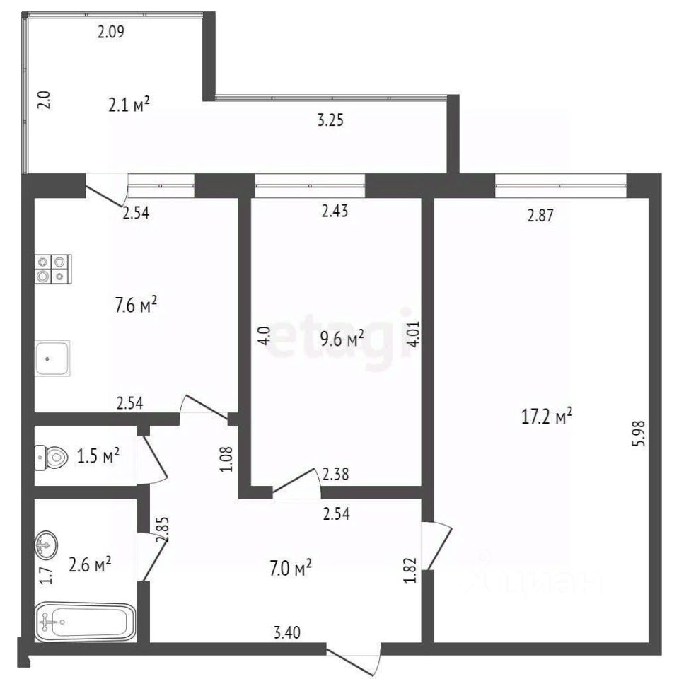 - Кухня: 17,9 м²