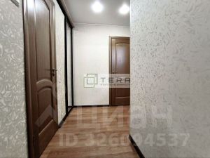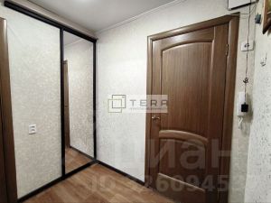 В прихожей встроенный шкаф с зеркалом. Хорошие двойные входные двери.