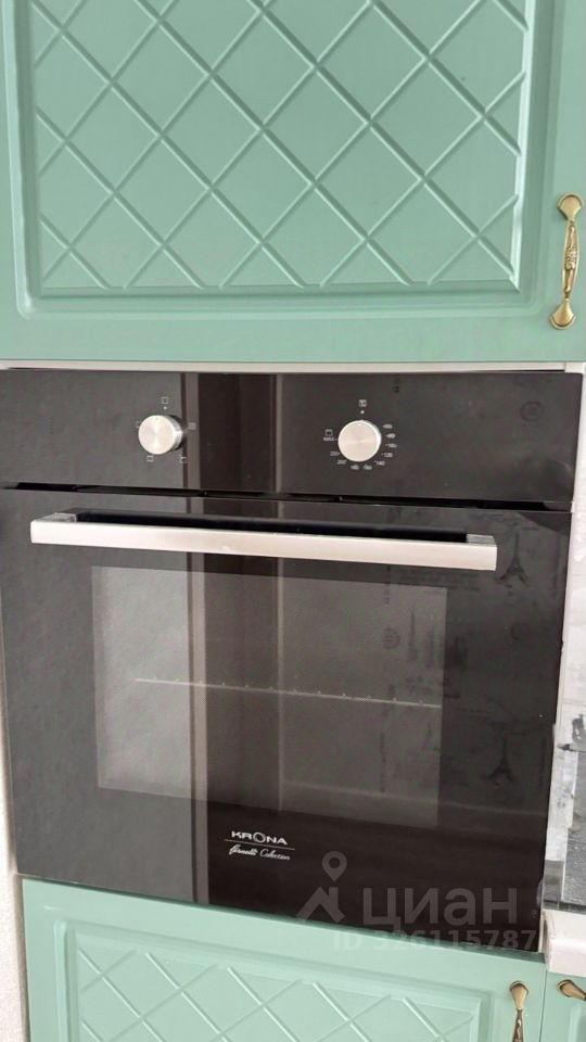 техникой -варочная панель марки Hansa, духовой шкаф - Krona. В квартире уложен ламинат, теплый пол в санузле. Есть вместительная гардеробная для вещей.