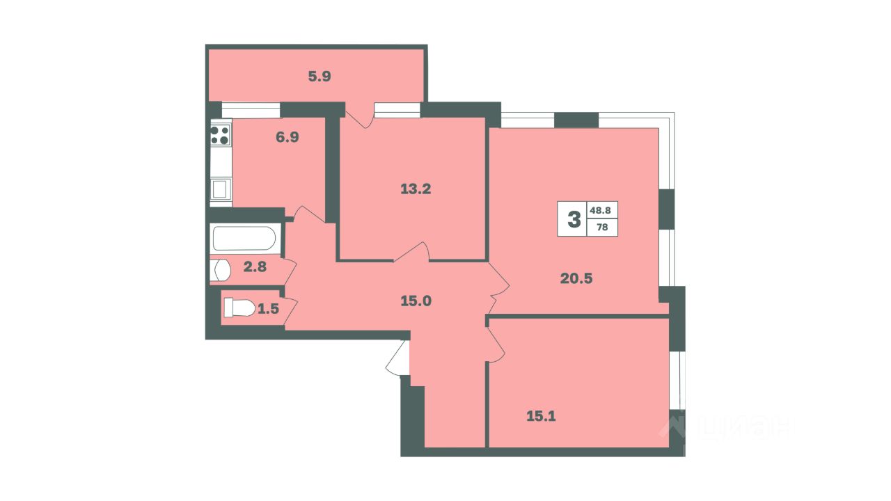 - продуманные планировочные решения квартиры с просторной кухней, возможностью сделать кладовую или гардеробную, два санузла;