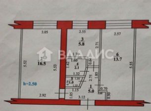 Квартира расположена на первом этаже пятиэтажного дома, комнаты изолированные, общая площадь комнат — 30,2 кв. м, кухня — 5,8 кв. м.