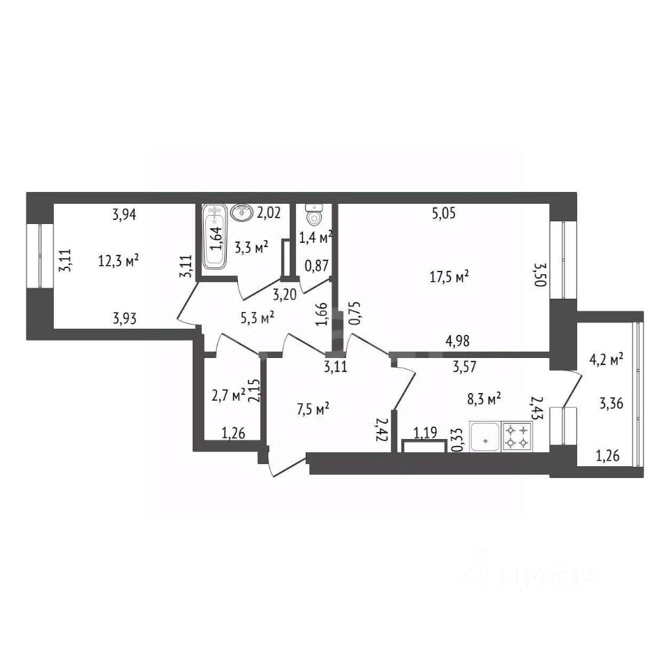 Угловая квартира 29 м² в кирпичном доме