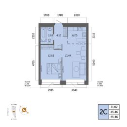Общая площадь 45.46кв.м.;