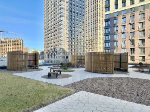 Детская площадка и зона отдыха расположена на 2 уровне от земли никаких посторонних людей, видеонаблюдение, качественные материалы отделки фасадов, дизайнерская отделка лобби, скоростные лифты, система Умный Дом, консьерж-сервис и многое другое.