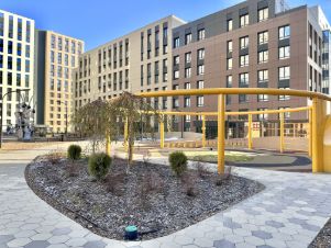 Hoвый жилой комплекс c кваpтальной зacтройкой: отличная реализация концепции "двор без машин", современные детские и спортивные площадки, батуты, террасы, во дворе декоративные беседки для отдыха, прогулочные зоны, тренажеры, большая парковка по периметру жилого комплекса, надземно-подземный паркинг.