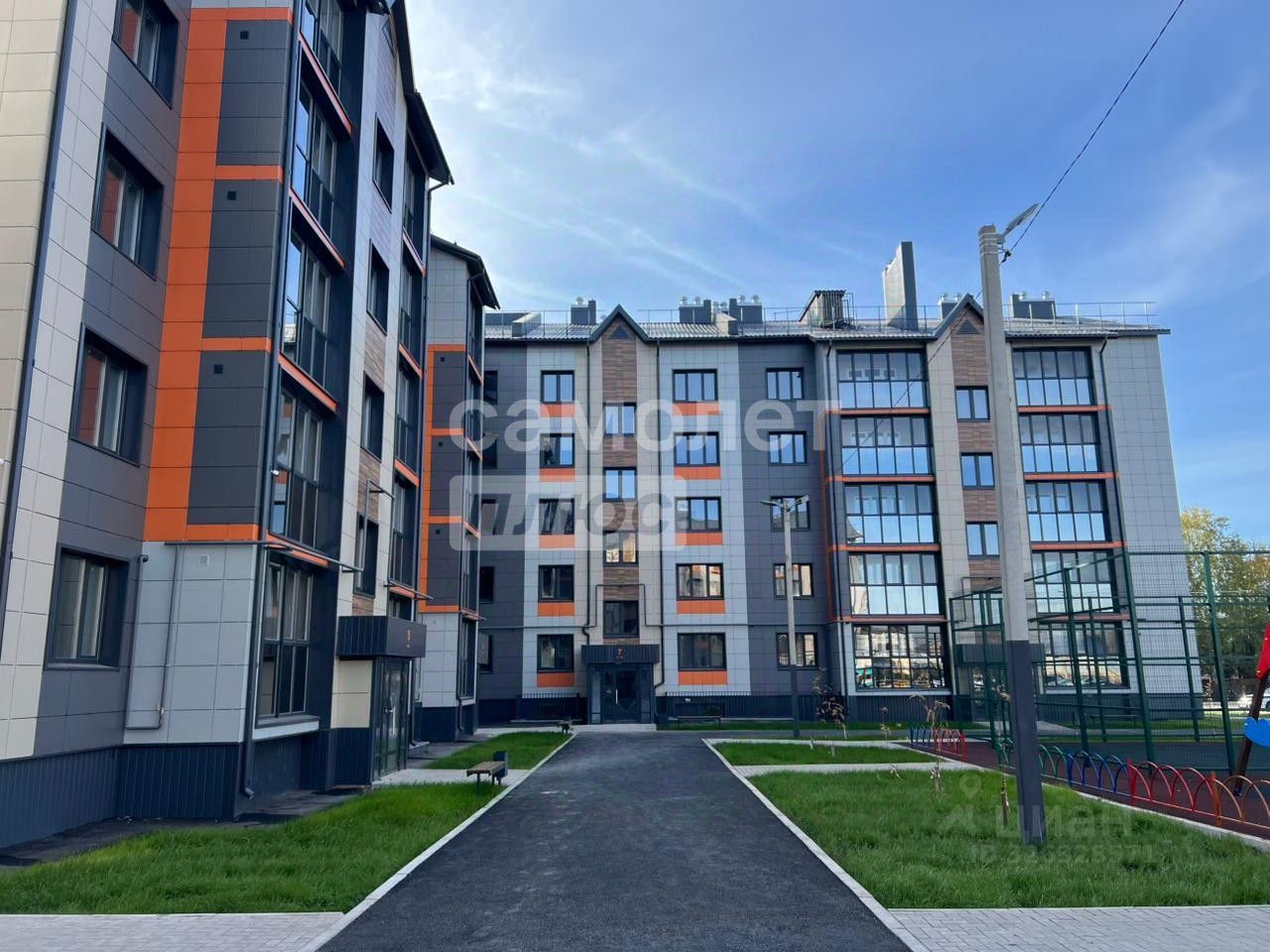 огороженная современная детская площадка, видеонаблюдение, парковочные места - всё грамотно зонировано и безопасно!