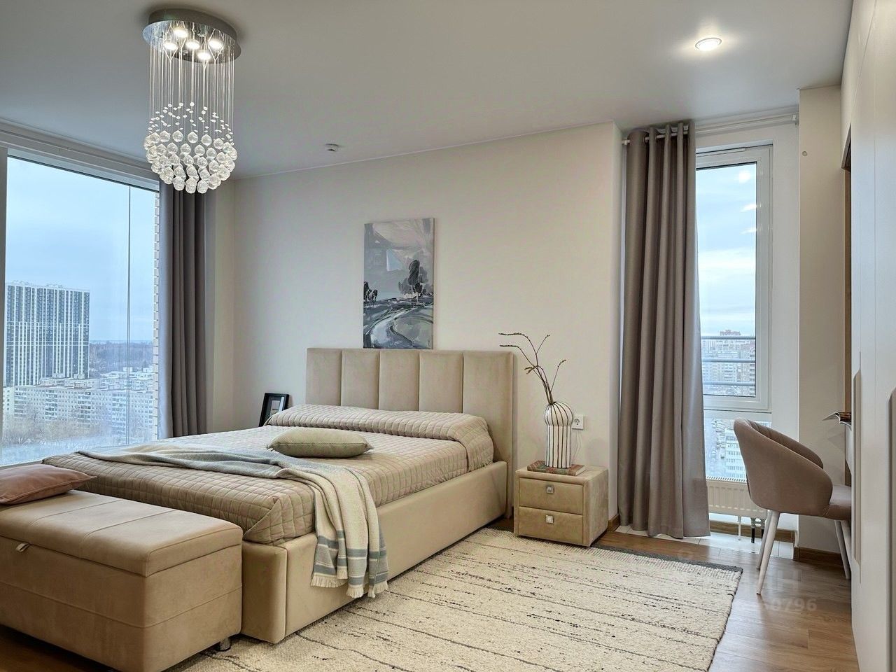 Двухуровневая квартира на 25-26 этажах с уникальными видовыми характеристиками, из панорамных окон которой открывается поистине завораживоющие виды на современный город в окружении лесного массива.