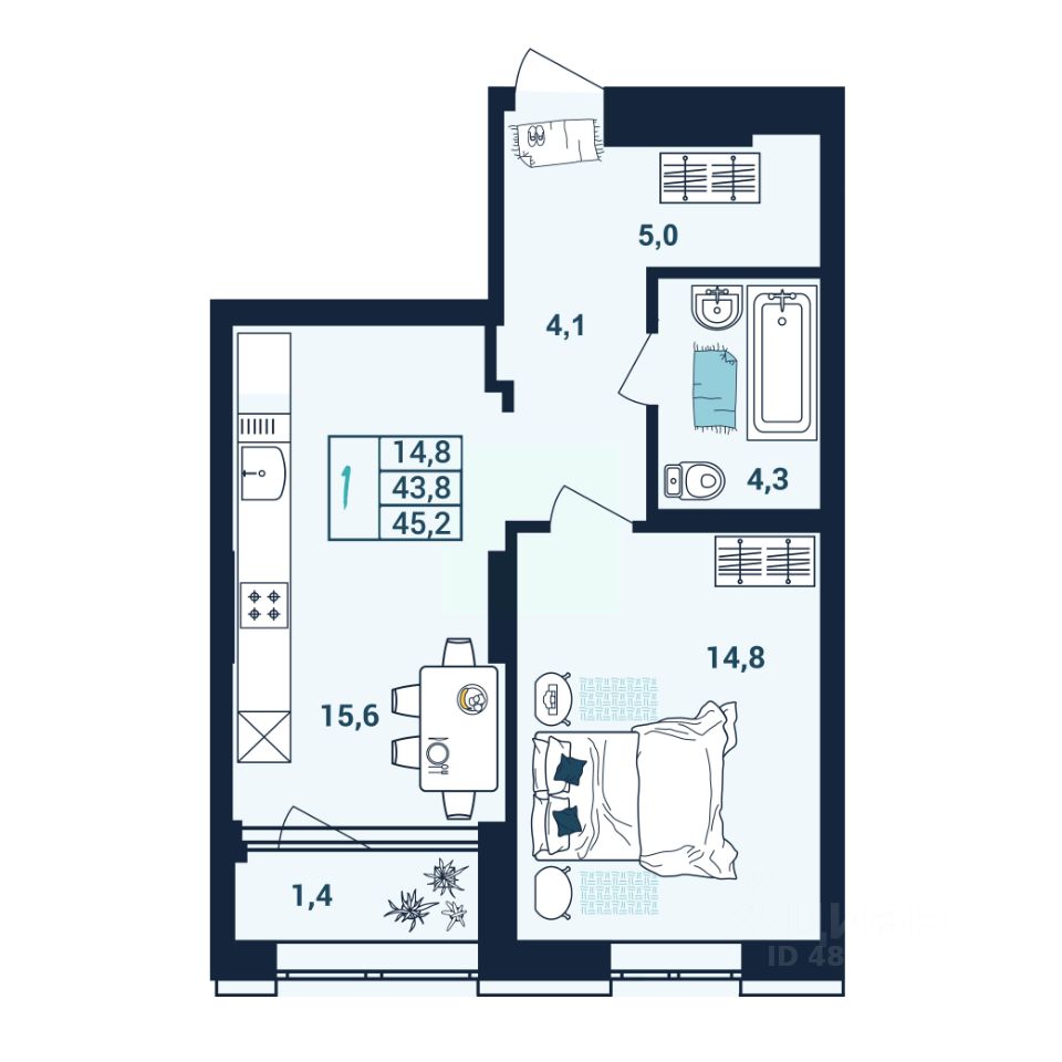 45,9 м²