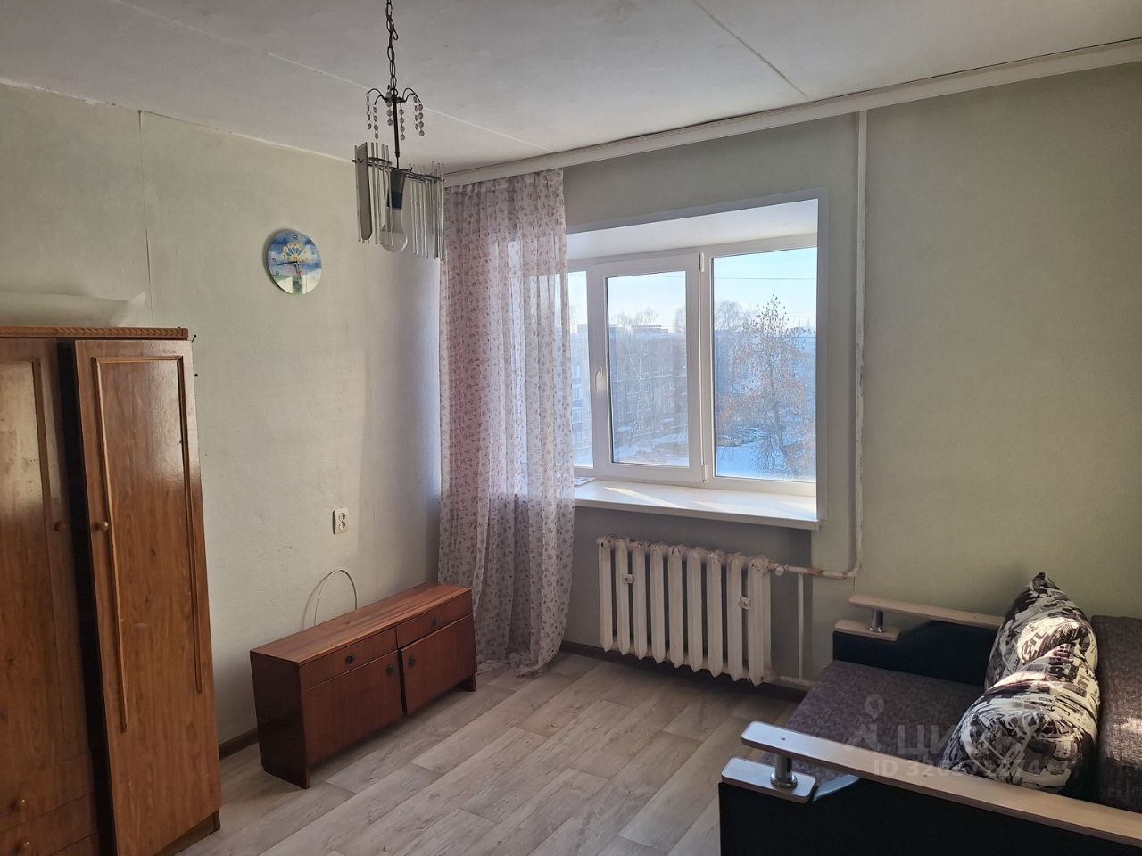 Продаю квартиру с косметическим ремонтом и мебелью. В комнате выполнен капитальный пол: все щели залиты цементом, сверху уложены ОСБ и тепло-изолятор (пеноплекс). Окна — пластиковые, дверь двойная (одна железная).
