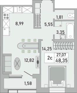 Продаётся 2-комнатная квартира в строящемся доме (Корпус 1), срок сдачи: IV-кв. 2025, общей площадью 48.35 кв.м., на 9 этаже. Новый жилой комплекс "Облака" от застройщика СЗ Сатурн-Инвест расположен по адресу Республика Башкортостан, Уфа, Бакалинская улица