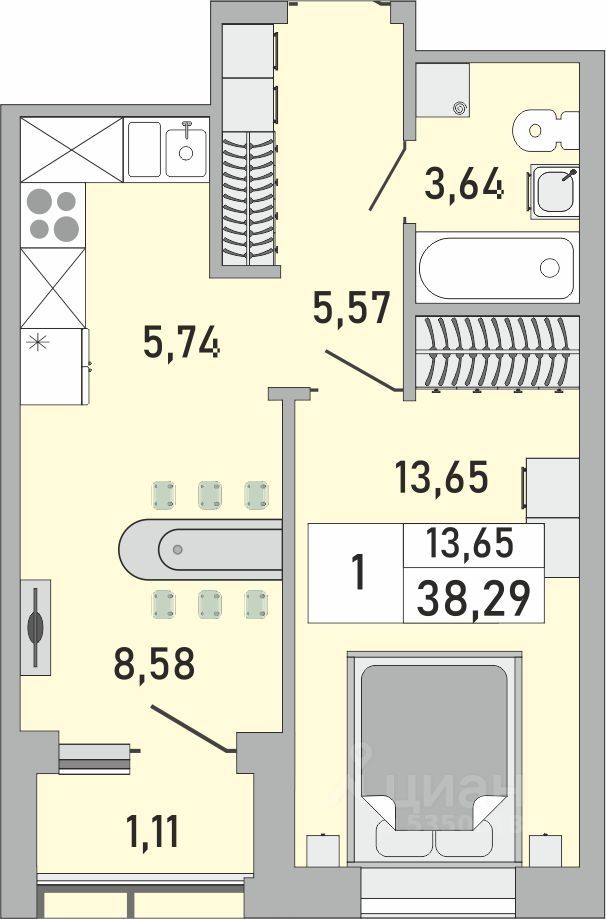 Продаётся 1-комнатная квартира в сданном доме (Бакалинская, 9/1 (Корпус 1)), срок сдачи: IV-кв. 2025, общей площадью 38.29 кв.м., на 21 этаже. Новый жилой комплекс "Облака" от застройщика СЗ Сатурн-Инвест расположен по адресу Республика Башкортостан, Уфа, Бакалинская улица