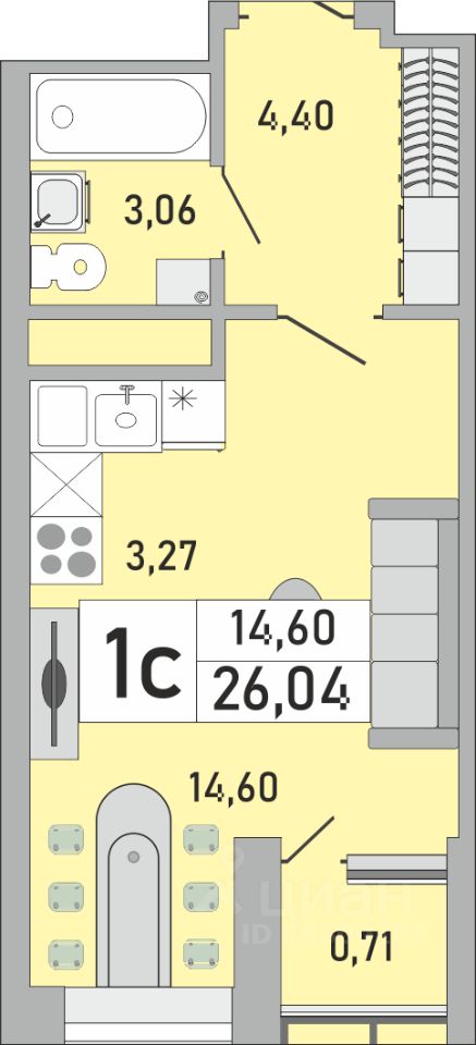 Продаётся 1-комнатная квартира в сданном доме (Бакалинская, 9/1 (Корпус 1)), срок сдачи: IV-кв. 2025, общей площадью 26.04 кв.м., на 12 этаже. Новый жилой комплекс "Облака" от застройщика СЗ Сатурн-Инвест расположен по адресу Республика Башкортостан, Уфа, Бакалинская улица