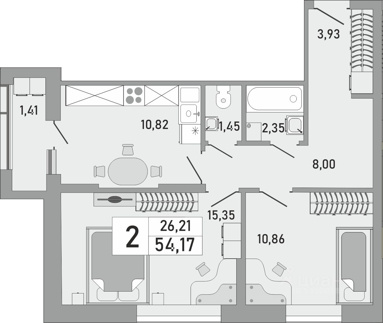 Продаётся 2-комнатная квартира в строящемся доме (Корпус 1), срок сдачи: IV-кв. 2025, общей площадью 54.17 кв.м., на 18 этаже. Новый жилой комплекс "Облака" от застройщика СЗ Сатурн-Инвест расположен по адресу Республика Башкортостан, Уфа, Бакалинская улица