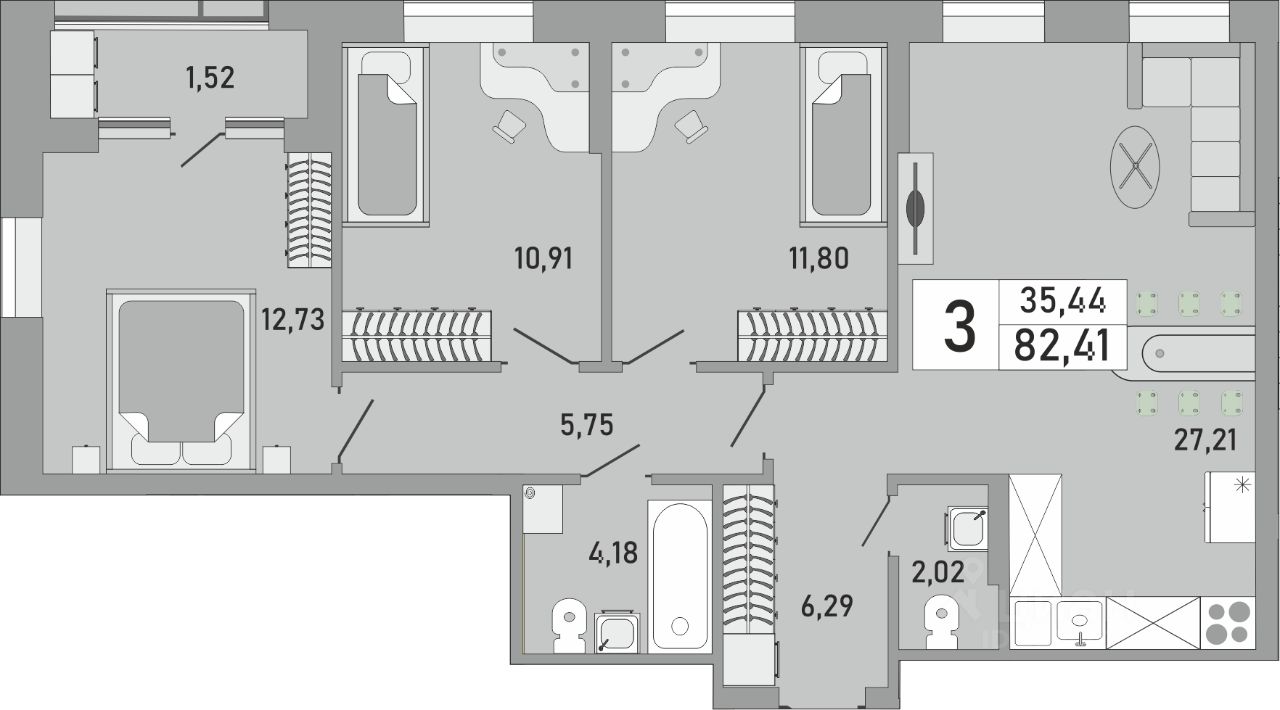 Продаётся 3-комнатная квартира в сданном доме (Бакалинская, 9/1 (Корпус 1)), срок сдачи: IV-кв. 2025, общей площадью 82.41 кв.м., на 18 этаже. Новый жилой комплекс "Облака" от застройщика СЗ Сатурн-Инвест расположен по адресу Республика Башкортостан, Уфа, Бакалинская улица