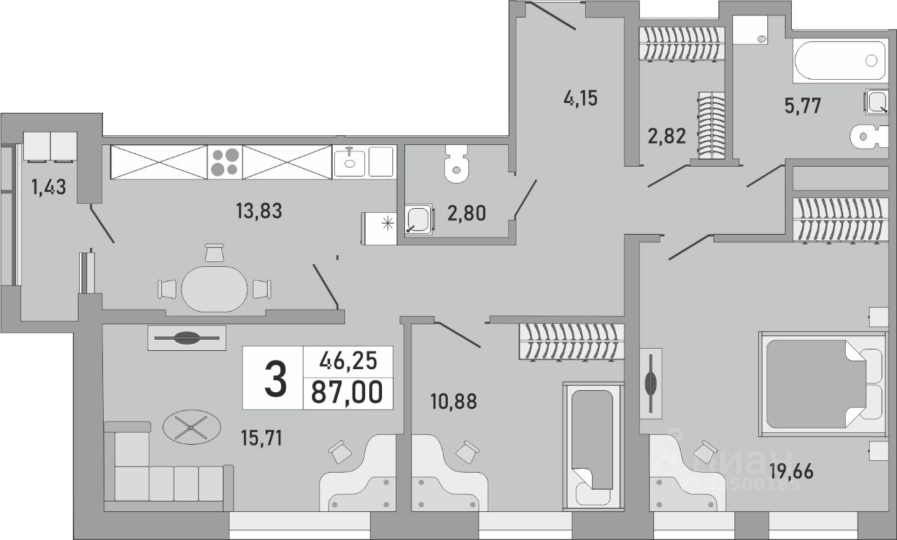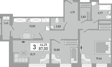 Продаётся 3-комнатная квартира в строящемся доме (Корпус 1), срок сдачи: IV-кв. 2025, общей площадью 87 кв.м., на 24 этаже. Новый жилой комплекс "Облака" от застройщика СЗ Сатурн-Инвест расположен по адресу Республика Башкортостан, Уфа, Бакалинская улица