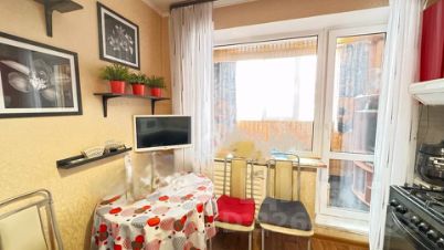 • Ремонт: Полы полностью отремонтированы — залита бетонная стяжка, постелен ламинат., ковролин. Балкон утеплен и обшит евровагонкой (зимний вариант,как отдельная комната с кроватью и телевизором). Установлен автономный нагреватель.