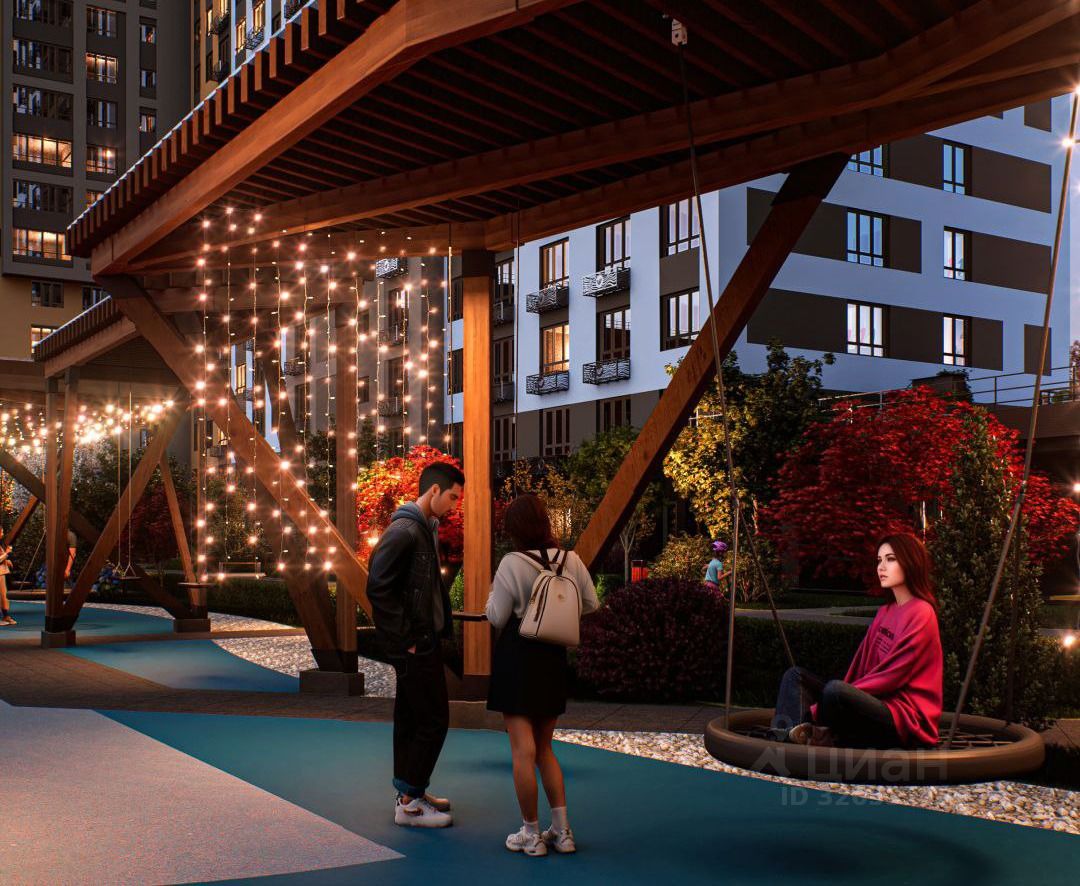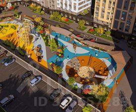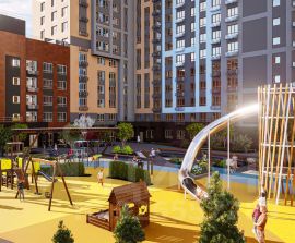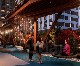 На территории дома мини-парк с многоярусным озеленением и освещением. Прогулочные зоны, велодорожки, мультифукциональные спортивные зоны и просторная территория для отдыха