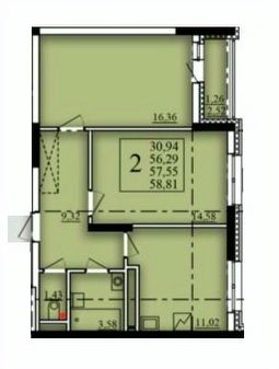 57,55 м²