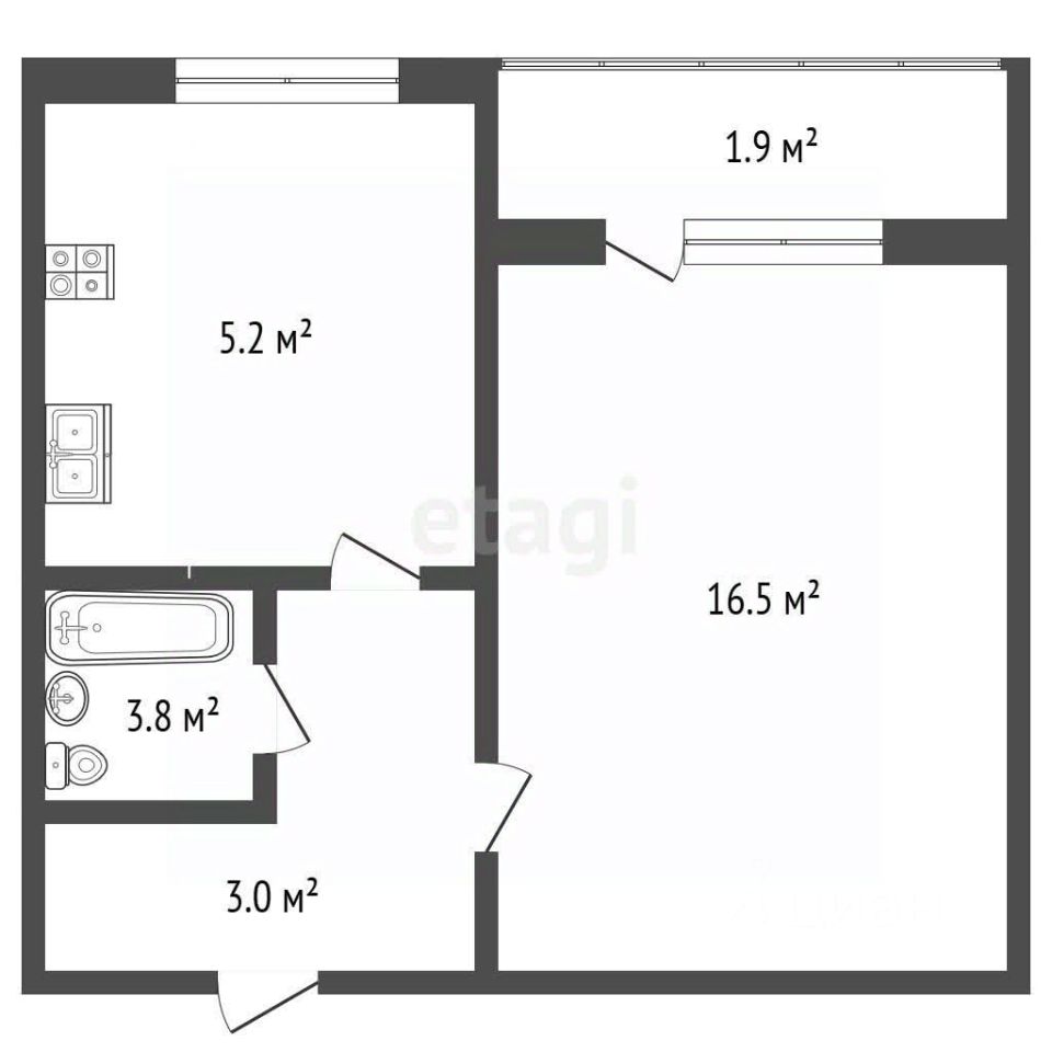- Площадь: 30.4 кв.м.
