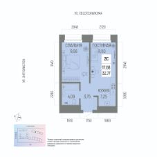 Общая площадь 32.77кв.м.;