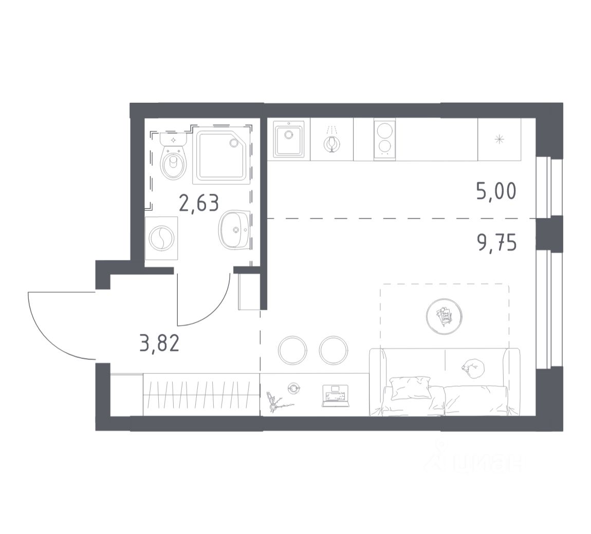 Строим кварталы для жизни с заботой о будущем. Предлагается студия комфорт-класса площадью 21.2 кв.м в корпусе 2КВ на 2-м этаже, в жилом комплексе "Сабанеева 125".