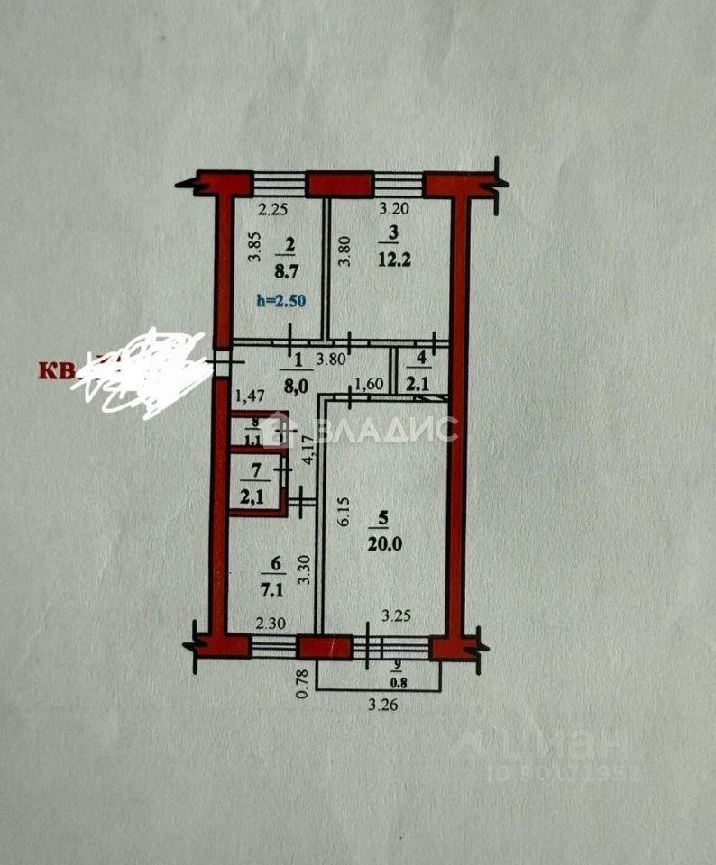 Просторная квартира общей площадью 62,1 кв. м на восьмом этаже девятиэтажного дома 1967 года постройки.